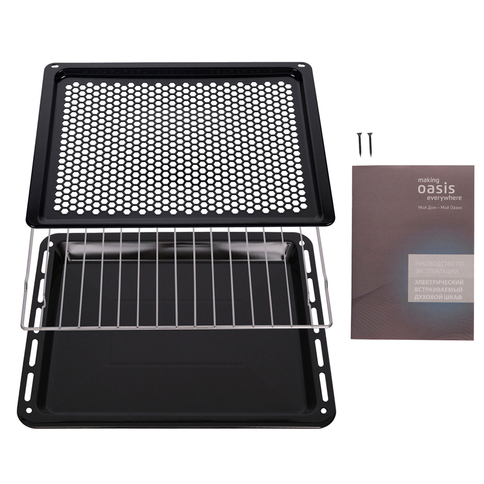 Электрический встраиваемый духовой шкаф making Oasis everywhere – решение для тех, кто ценит удобство и современный подход к приготовлению пищи. Утапливаемые ручки позволяют устройству гармонично вписаться в кухонный гарнитур и облегчают уход за панелью управления. 7 режимов работы открывают простор для кулинарных экспериментов. Сенсорный таймер предоставляет полный контроль над процессом готовки. С объёмом внутренней камеры 77 литров можно готовить несколько блюд одновременно для большого застолья. Конвекция обеспечивает равномерное приготовление благодаря циркуляции горячего воздуха по всей камере духовки. Гриль добавляет мясу, рыбе и овощам аппетитную золотистую корочку, а также быстро подрумянивает выпечку, придавая ей привлекательный вид. Аэрогриль обеспечивает быстрое и равномерное приготовление с хрустящей корочкой по всей поверхности блюда, как при жарке во фритюре, но с минимальным количеством масла. Двойное жаропрочное стекло эффективно снижает температуру внешней поверхности, предотвращая ожоги. Покрытие Low-E повышает энергоэффективность, удерживая тепло внутри. Съёмное внутреннее стекло упрощает чистку прибора. Стальные и телескопические направляющие обеспечивают плавное и безопасное выдвижение даже тяжёлых противней. Тангенциальное охлаждение создаёт вокруг духовки воздушный барьер, который препятствует утечке тепла, защищая от перегрева как саму духовку, так и кухонную мебель.